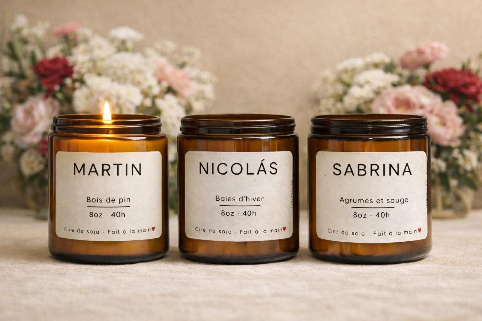 Chaque bougie est coulée à la main, il se peut que son apparence varie et qu'elle ne soit pas tout à fait parfaite! Nos bougies sont légèrement parfumées (10 %), elles ne donnent pas mal à la tête. Toutes nos bougies et fondants sont étiquetés en papier de chanvre recyclé.