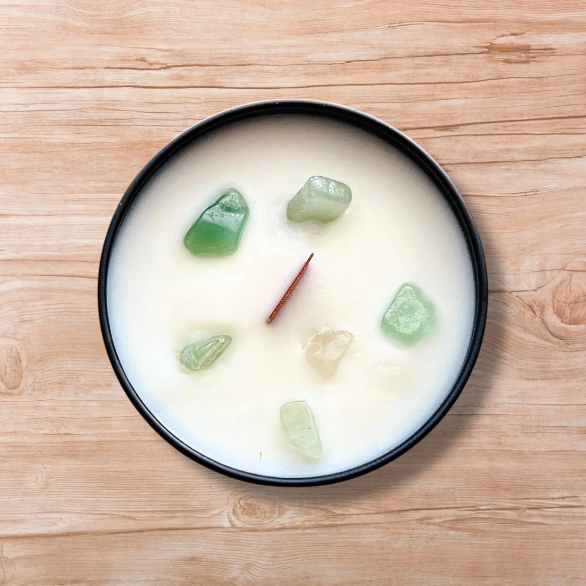 - Sumérgete en un ambiente sereno con esta vela artesanal. La salvia, purificadora y calmante, libera la mente de energías negativas y promueve una atmósfera serena, mientras que la aventurina, piedra de suerte y prosperidad, estimula la positividad y la armonía.