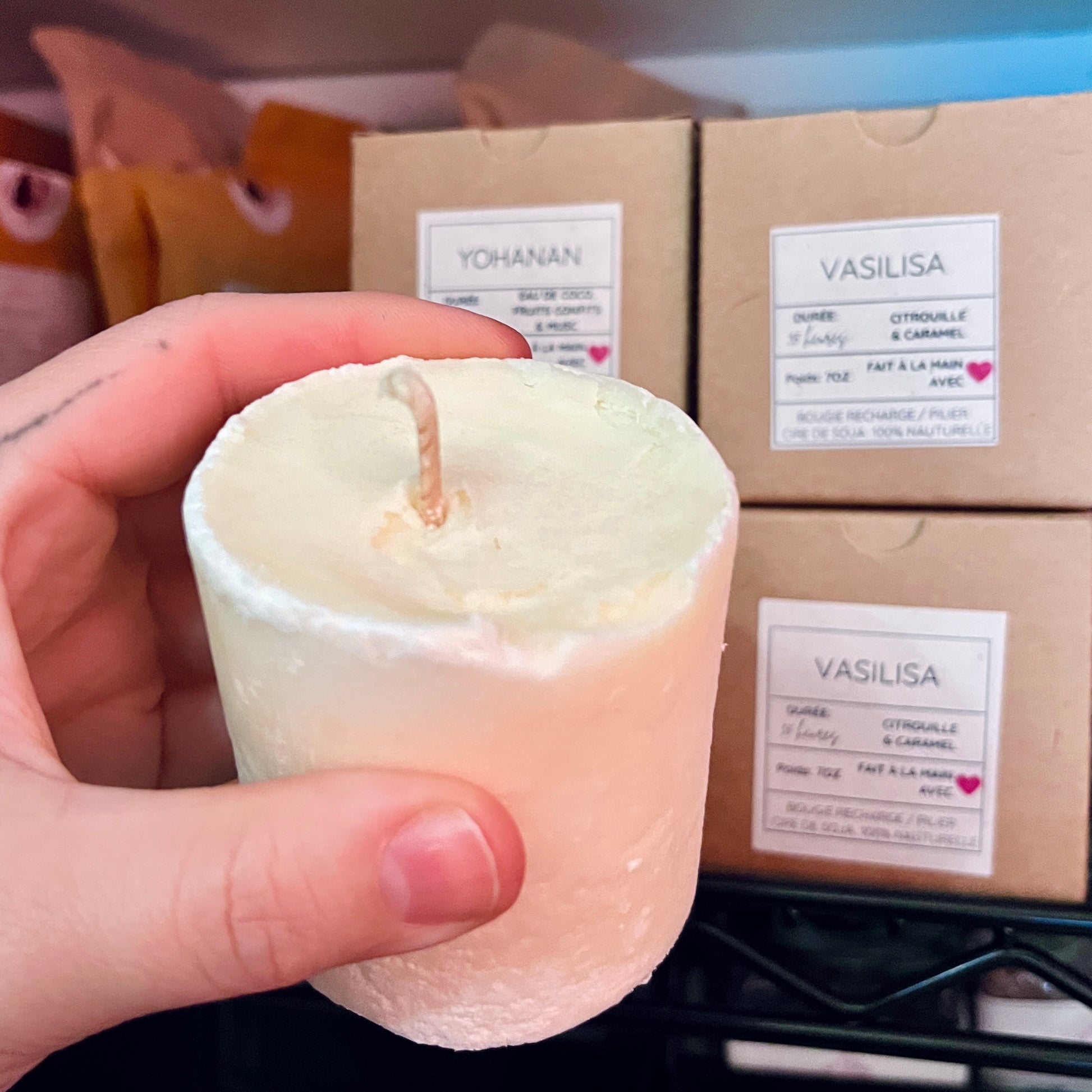 Brule une env. 30h. Les bougies sont un peu brisées / moins belles.