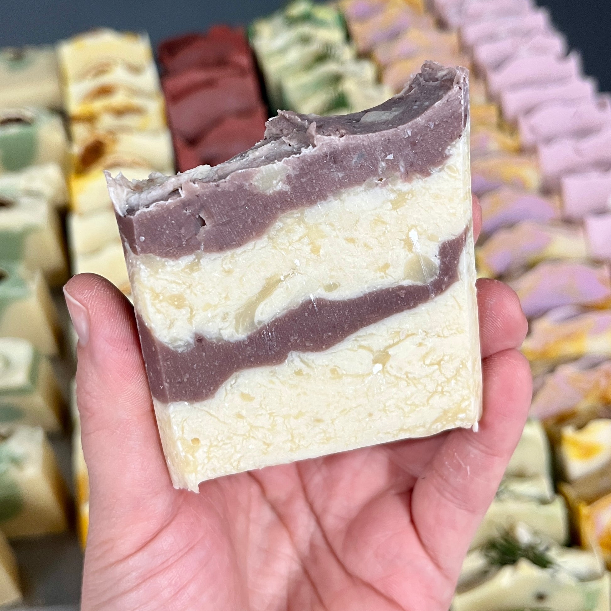 Le savon à l'argile artisanal et naturel Whitney est composé d'argile brésilienne, de beurre de mangue et d'huile d'avocat.